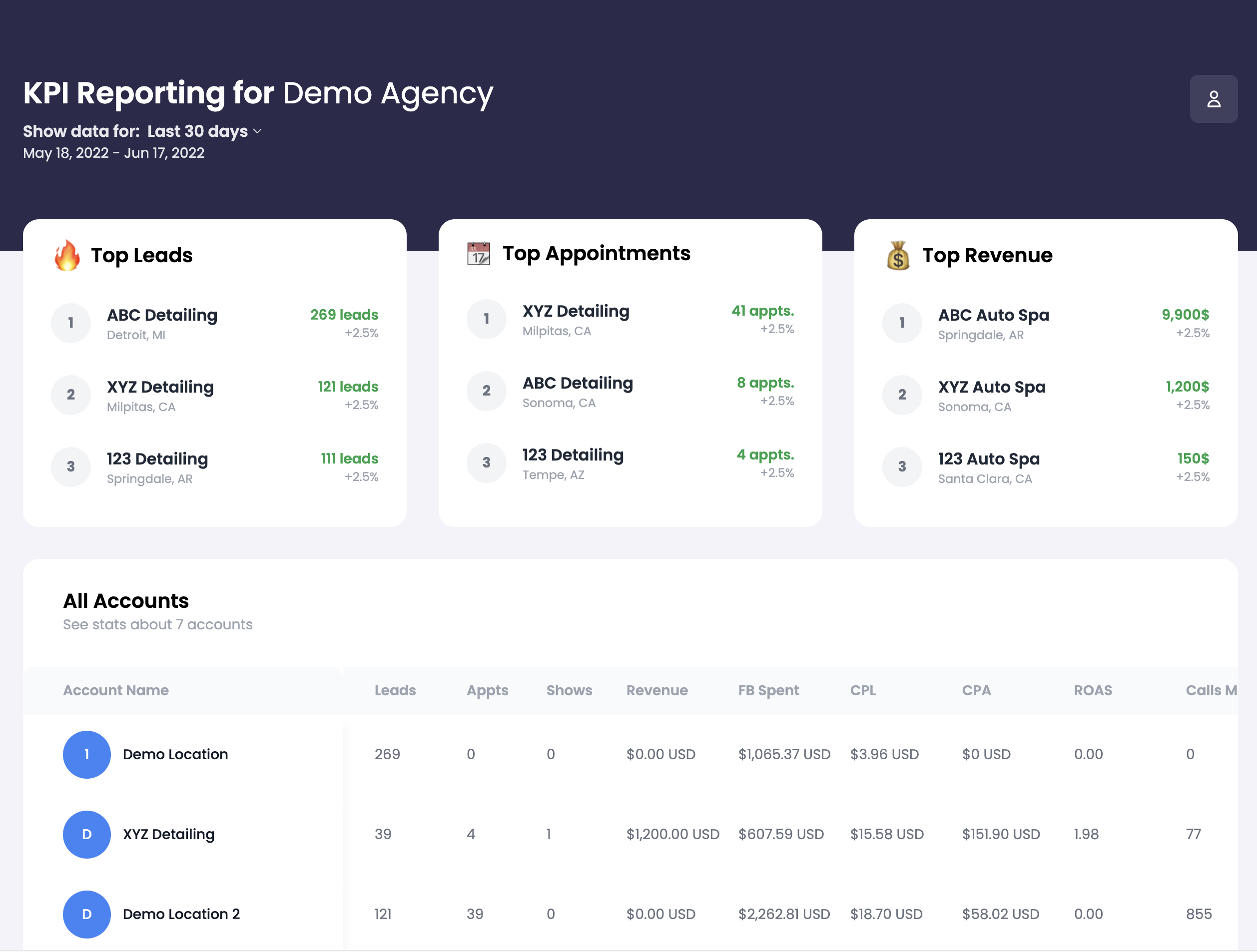 See your clients most important data, in one place. Our real-time analytics dashboard was purpose built by agency owners, for agency owners. No more jumping around between locations, ads managers, and spreadsheets to keep a pulse on your client performance.